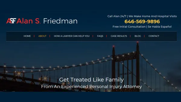 Alan S. Friedman has built a reputation as a dedicated personal injury attorney with over 25 years of experience in New York. Clients frequently praise his personal attention, accessibility, and knowledge of the law, often citing his responsive communication and willingness to answer questions, even outside normal hours. Many reviewers describe him as personable and compassionate. While overwhelmingly positive, reviews are relatively limited, and there is little public criticism; however, this scarcity makes it hard to assess consistency in outcomes. The firm is known for handling every aspect of a case directly and fighting for favorable client results.